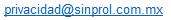 En términos de lo previsto en la “Ley Federal de Protección de Datos Personales en Posesión de los Particulares” (en lo sucesivo la “Ley”), su reglamento y los lineamientos aplicables, le informamos lo siguiente: Sinprol, S.A. de C.V., (en lo sucesivo SINPROL”), señalando para efectos del presente aviso de privacidad el domicilio ubicado en Calle Mitla 22, Interior 101, Colonia Nueva Antequera, Puebla Puebla, C.P. 72180, será el responsable de recabar sus datos personales. También será responsable del uso y protección que se le dé a los mismos y a aquellos datos que sean recabados por cualquiera de las sociedades mercantiles que sean filiales o por terceros contratados para realizar servicios a nombre de SINPROL, de conformidad con el presente aviso de privacidad (en lo sucesivo el “Aviso de Privacidad”).